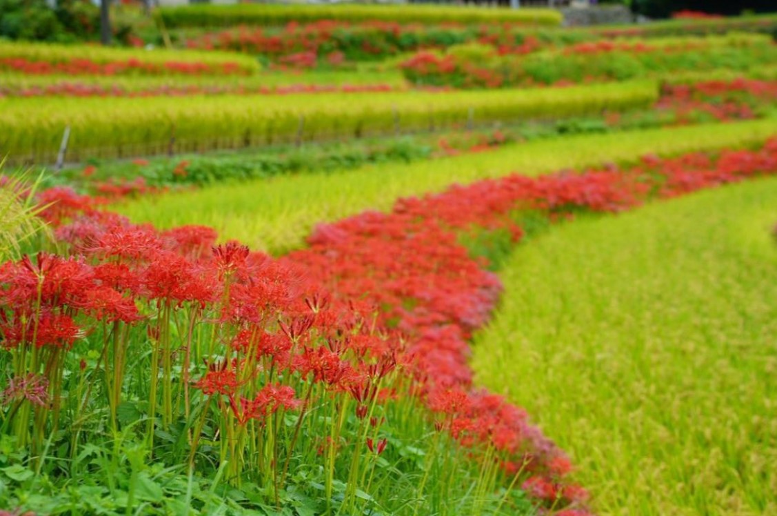 ここで、送迎の道すがら撮影した「実りの田んぼ」と「彼岸花」の写真をご紹介します。黄金色と鮮やかな赤のコントラストが、秋の訪れを強く感じさせてくれました。