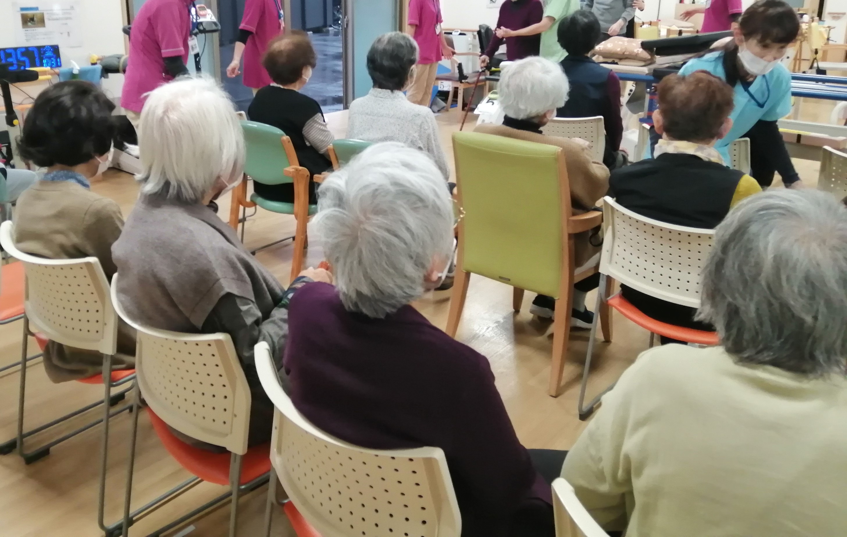始まりは緊急地震速報の音を流し「地震が発生しました」とお伝えし、マシンを実施している利用者さんや機能訓練を実施している利用者さん、お席で過ごされている利用者さんと利用中に起こった想定スタートしました。