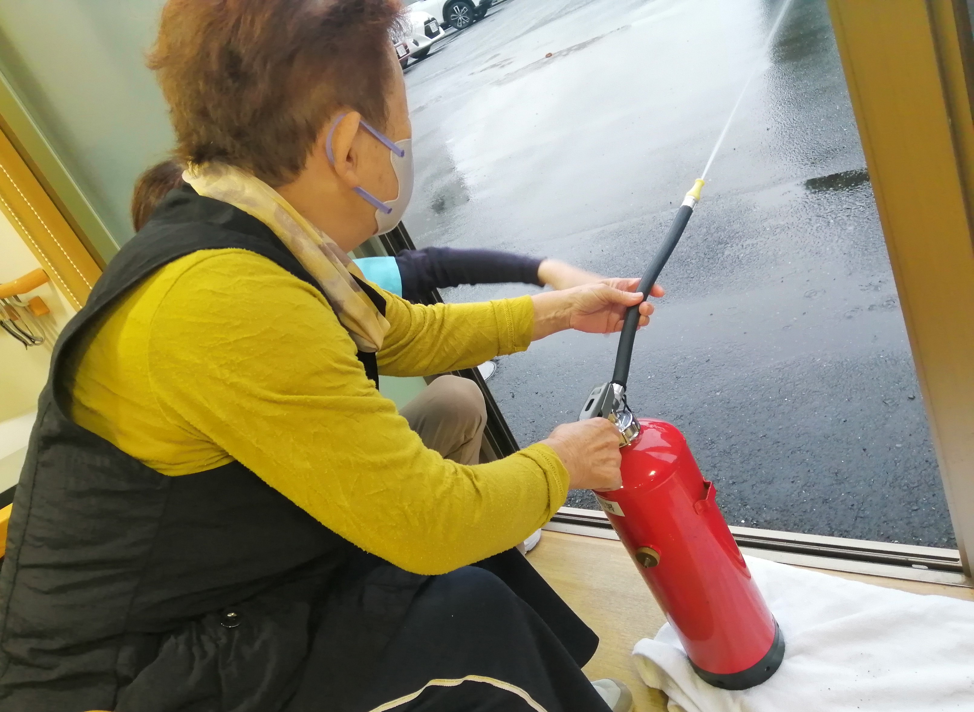 続いて、利用者さんによる消火器の使い方の確認を行いました。