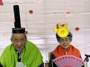 利用者の皆様に、お内裏様とお雛様に変装してもらい、写真撮影を行いました。